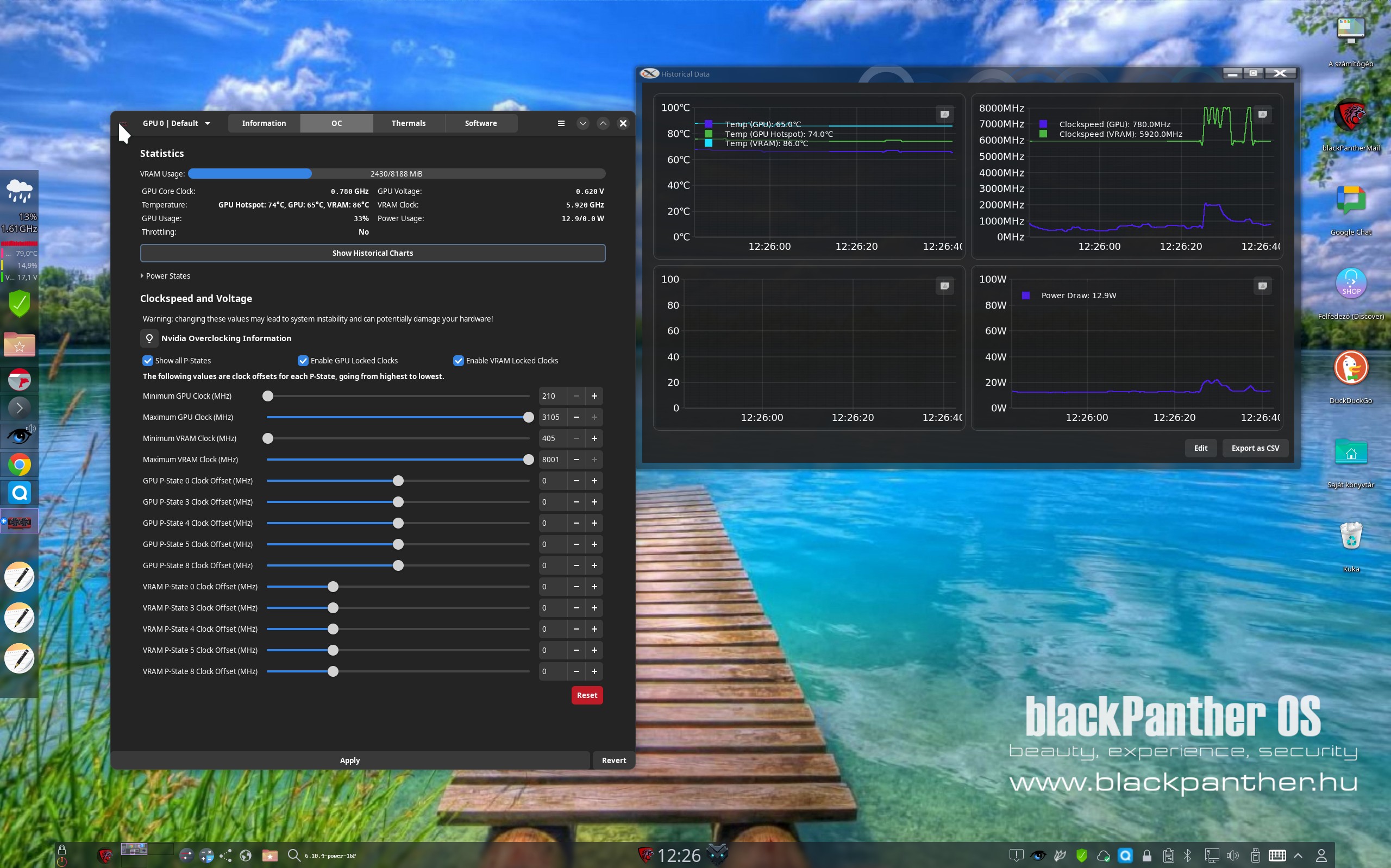 - Overclocking: GPU- és VRAM-órajel beállítások, alacsonyabb feszültség beállítások támogathatósága.