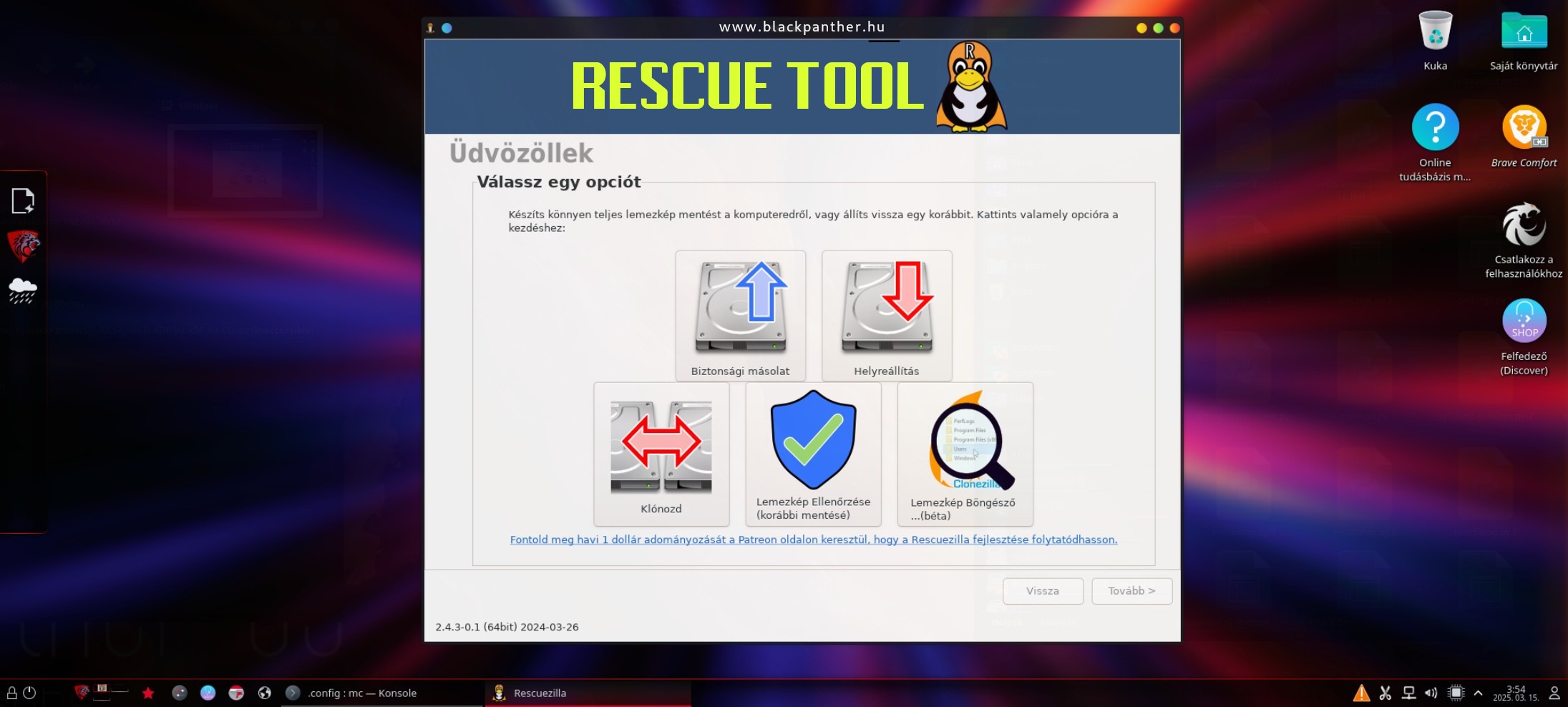 Ez egy rendszer-helyreállító és biztonsági mentési eszköz, amely a Clonezilla projekt alapjaira épül. Célja, hogy egyszerűsíti a rendszermentést és a helyreállítást grafikus módon, lehetővé téve a felhasználók számára, hogy könnyedén készítsenek biztonsági másolatot a számítógépük teljes állapotáról, beleértve a fájlokat, alkalmazásokat és operációs rendszert is.
