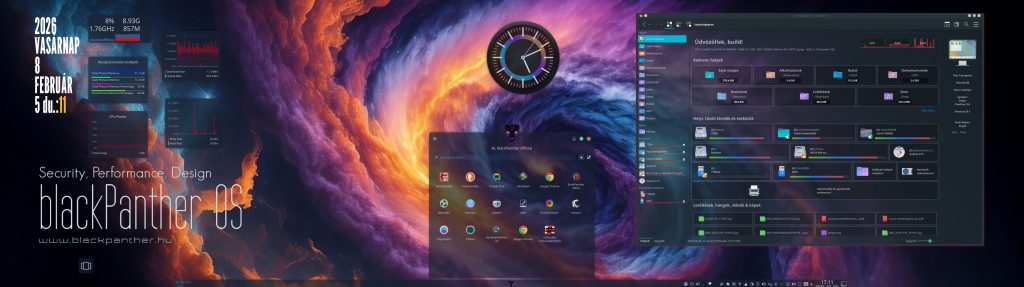 - Képzeld el, hogy ehhez a weblaphoz, képekhez, grafikai elemekhez, dokumentációkhoz, videókhoz, programokhoz de még a kiszolgáló szerverhez – ami most megjeleníti neked az oldalt -, se kellett Windows! És más multivállalat drága terméke sem! Minden a magyar blackPanther OS-en készült és működik ebben a pillanatban is…