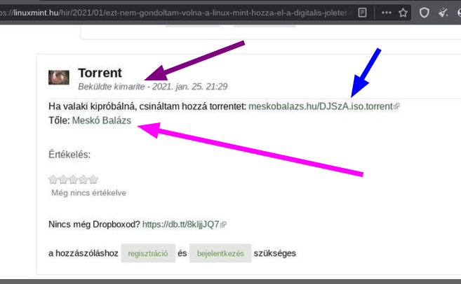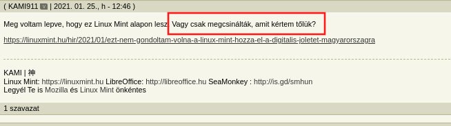 Szalai Kálmán (Internetes nevén: KAMI911, vagy Senki Alfonz – az FSF.hu által finanszírozott LinuxMint.hu -n számtalan tisztséget betöltő), szoros kapcsolatban állt (2. kép) a „készítőkkel”, hiszen ezt ő maga állította.
