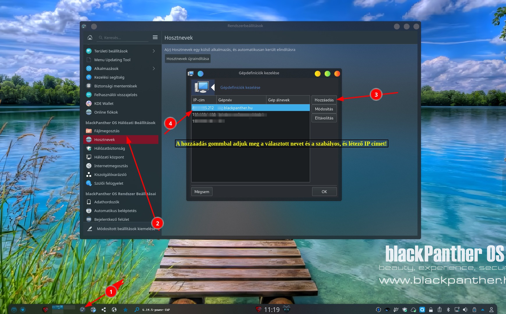 Rendszerbeállítások -> Hosztnevek ( blackPanther OS Hálózati Beállítások szekcióban)
